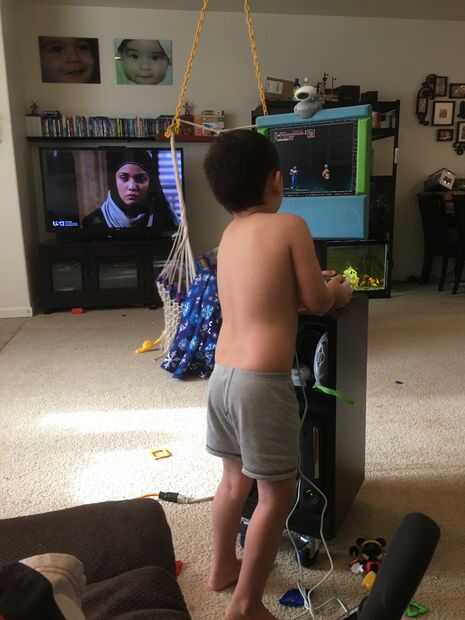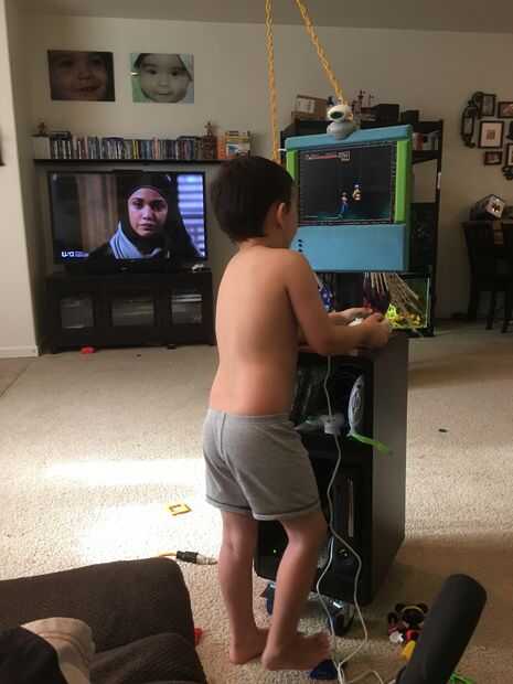 Así que tengo dos niños, uno es joven a jugar todavía pero el otro tiene cinco años y que está empezando a gustar juegos de video, lo malo es que no le gusta estar en su habitación solo y la sala de TV casi nunca está disponible para él jugar. Así que recogí algunos restos madera, ruedas extras y la pantalla de un portátil viejo que desmonté hace unos meses y me puse a trabajar!