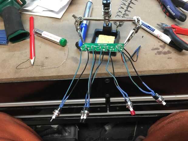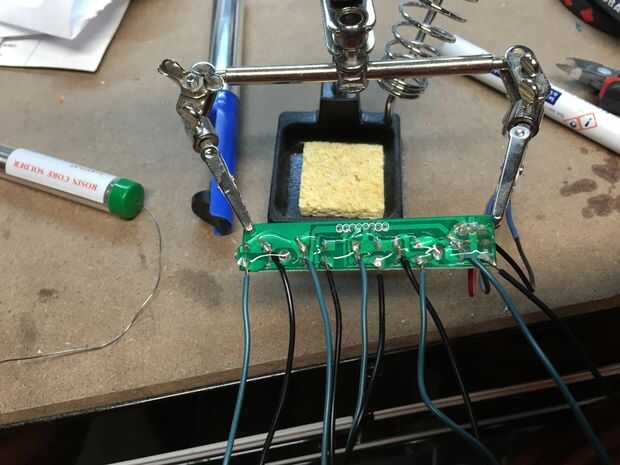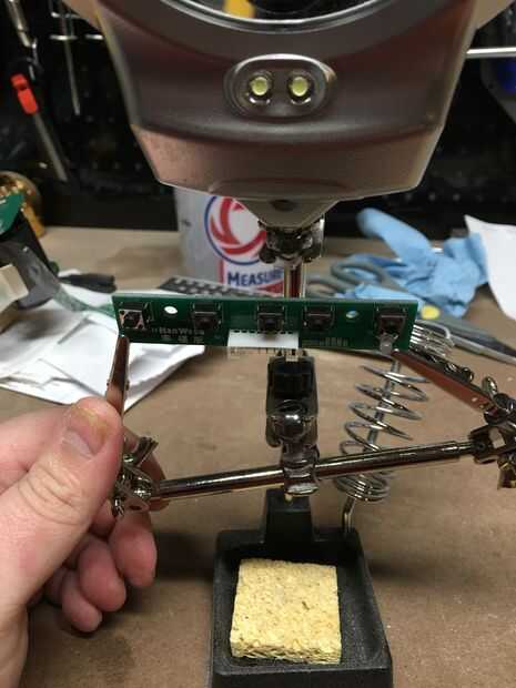 I extendió todos los 5 botones y la luz del led, en retrospectiva debo han extendido los un poco menos, que luego cinco agujeros perforados y el interior más amplio y pegué los botones usar CA glue(superglue).