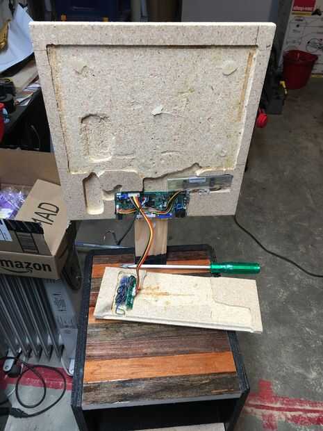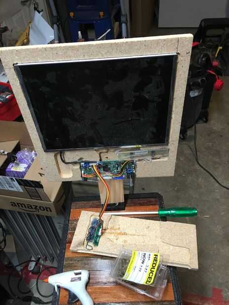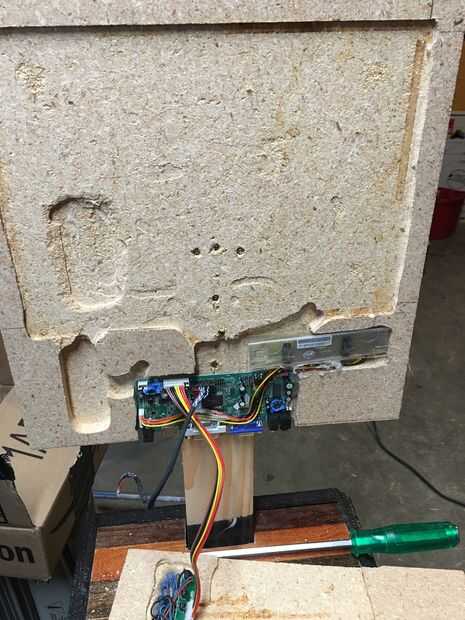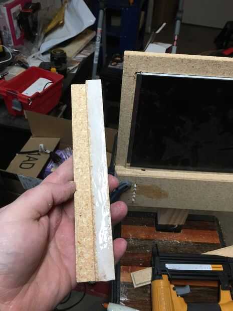 Lo primero es montar el parte trasera de la pantalla de 2 x 4 usando clavos y pegamento, asegurándose de que está incluso y en la altura correcta, entonces aseguró la pieza posterior con tornillos para darle más fuerza, entonces, pone todo en su lugar, entonces puse pegamento caliente detrás de la pantalla y las placas para mantenerlas en su lugar mientras que pegamento y clavo el frente y hacer una pantalla sandwich jajaja. Agujeros para los botones extendidos previamente había perforados y condujo para estar seguro de que en el lugar correcto y luego se diseminó pegamento en los lugares donde la madera toca madera y con clavos más cortos armar la configuración de pantalla.