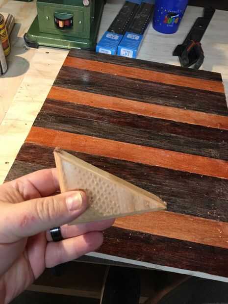 Lo que terminé haciendo fue que tomé una pieza de madera de desecho y sentarse en un triángulo y utiliza los ángulos en el triángulo como una espátula no rasguña, tomó algún tiempo y la grasa del codo pero resultó bien.