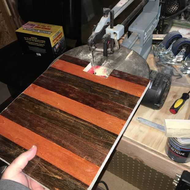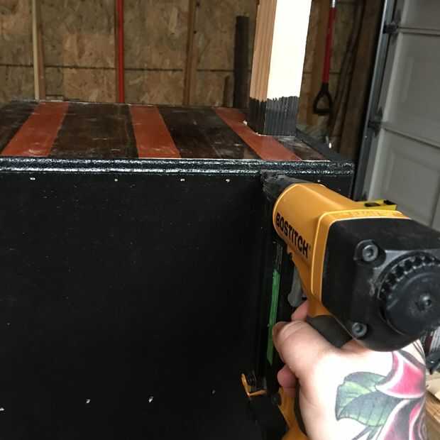 Ok ahora mide la mesa y cortar para que quepa, y llevó a la Sierra de calar para cortar la muesca para el 2 x 4. Y entonces yo sólo clavó la parte superior, ahora que es todo en su lugar vamos a llegar a la diversión parte.