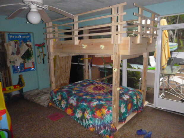 Construí esta para un patio porque las condiciones climáticas del sur de Florida pueden hacer un lío de madera fuera después de pocos años. También, debido al problema de los mosquitos locales. Este fue un compromiso para hacer una real fortaleza casita o juego afuera.