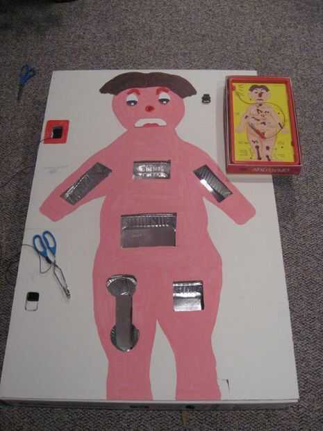 Lo que surgió es una versión de enorme tamaño de la operación del juego. Mira, actúa y funciona exactamente igual que la diversión del viejo juego de mesa. Lo mejor de todo no era muy difícil de hacer y de bajo costo $10. Había planeado esta antelación podría tener había algunos de mis alumnos ayudan a hacer el trabajo, ya que la mayor parte de se consiste en pintura y corte.