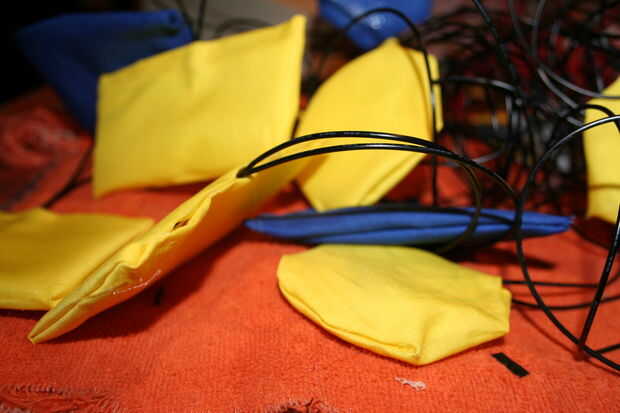 Una vez que el papel, papel y sándwiches de alambre se insertan, cerrar la abertura del botón (utiliza pegamento caliente para cerrar la apertura).