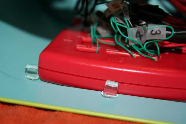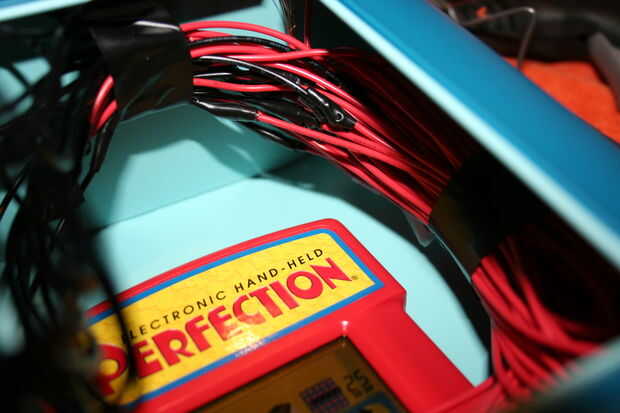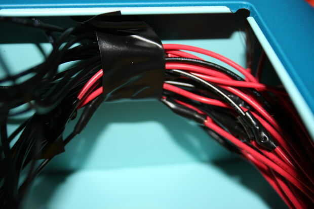 Coloque el juego con los cables conectados dentro de la caja y fije los cables y los juegos con cinta, pegamento, cubos de plástico... para mantener todo en su lugar.