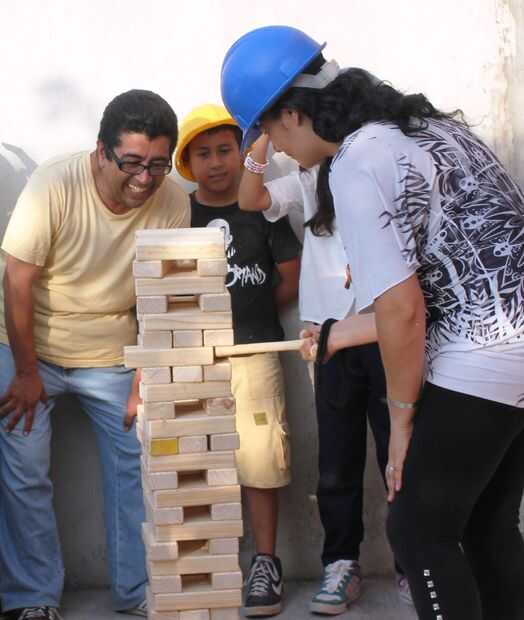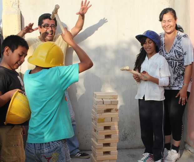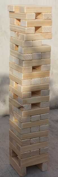Esto es una gran mejora sobre el Jenga, tiene más piezas y tiene tacos!. Este juego es muy rápido y fácil de hacer.  Super es de tamaño y se puede apilar más de 5' de alto. Los mazos añadir a la diversión para los niños y hace más fácil mover las tablas de gran tamaño.