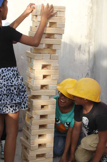 Hice este juego para que pudiera llevarlo a nuestro parque de la comunidad y para todos los niños del barrio para jugar con. (bueno, los no jugando un juego que es similar al Jenga ;-)) Es muy popular. El gran tamaño puede dibujar incluso en adolesce