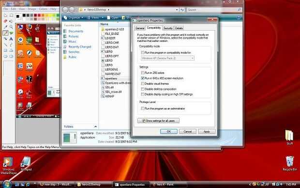 Haga clic en "Ejecutar en la resolución de pantalla de 640 x 480"