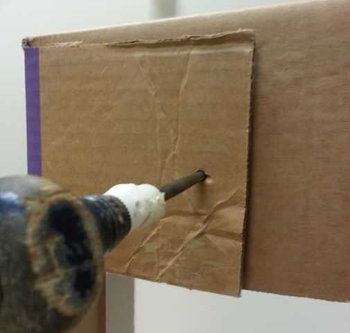 Perfore agujeros a través de cada una de las 8 esquinas de la caja donde el cartón solapas de superposición. He utilizado un punzón para hielo.
