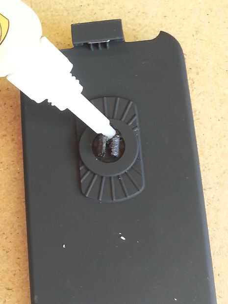 Desmonte la funda de su teléfono. Todo lo que tenía que hacer con la mía era quitar el clip y el pivote de la funda en lugar del pegamento.
