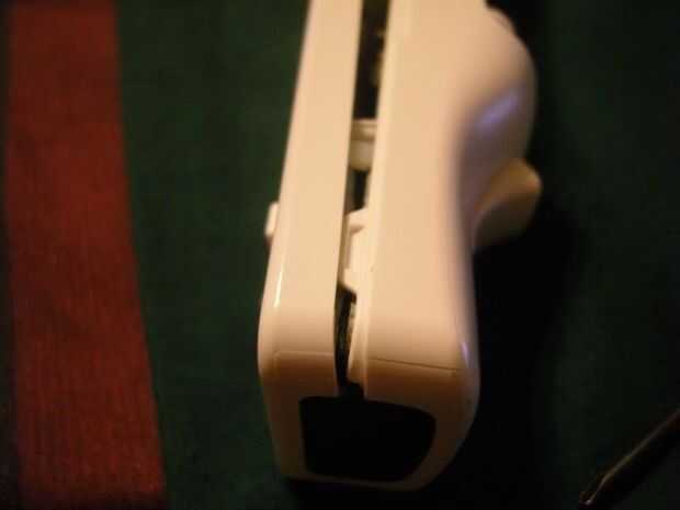 Hay 4 tornillos tri-wing mantiene su Wiimote juntos. Llevarlos a cabo. Todavía hay 2 clips que sostienen el frente juntos, ten cuidado si te preocupas por poner juntos más adelante, sólo rip apart si no.