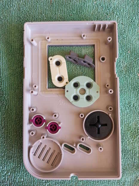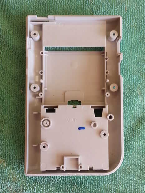 En este momento, contamos con toda la electrónica sacada de dentro de la Game Boy. Se recomienda limpiar cada nook y cranny para conseguirlo como mucho como nuevo como sea posible. Que mina remojar en agua caliente jabonosa y limpia tanto como pude. Recuerde llevar la pegatina de la parte de atrás. Me quité la mía muy bien con un cúter en una de las esquinas. Solo pelado y era capaz de poner en una vez que estaba todo limpio.