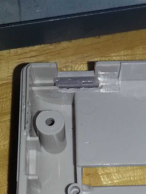 Como he dicho antes he querido tantas cosas como stock y original como sea posible, así que quería que el bloqueo del cartucho de juego que se une al encendido apagado interruptor para estar en su lugar. Sólo cortar la parte del interruptor y del pegamento en la cerradura cuando pegue en la ventana. (sólo la ventana en su lugar en la mitad posterior de la Game Boy y no la mitad delantera del pegamento)