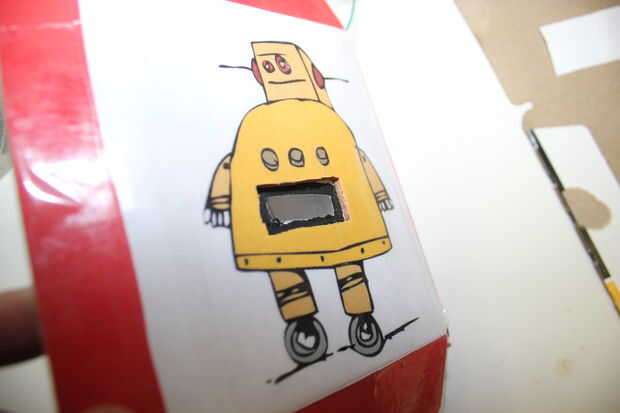 El cuadro que hizo de la anterior parada dentro de la caja más grande de cinta