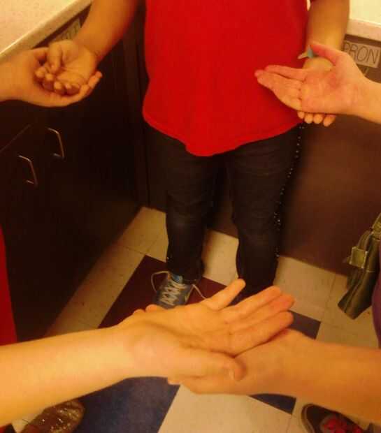 Para jugar con todos los jugadores forman un círculo en el que todo el mundo se enfrenta al centro del círculo. Ahora todo el mundo levanta la palma de las manos hacia fuera hasta a los jugadores a cada lado de ellos. Cada jugador coloca una mano bajo la mano del jugador a su izquierda y la otra mano encima de la mano del jugador a su derecha como se muestra en la foto.