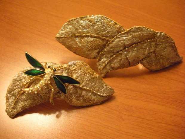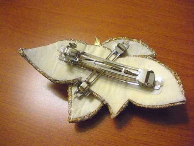 Al final hice dos clips ya tenía suficiente tela y ponerlos juntos, un pequeño con dos hojas uno y un tres más uno con hojas y recortan una pequeña a la grande para un efecto total más grande, así puede ser utilizado en lugar de un pequeño sombrero o fascinator.