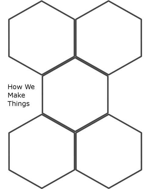 Medida hicimos los 5 hexágonos en Inkscape (porque quién quiere ir por el camino fácil)