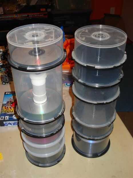 También tengo un gran número de cajas vacías de la torta de CD/DVD, discos de relleno y separadores de espuma. Yo no nunca desecharlos si pienso en algo con ellos para.