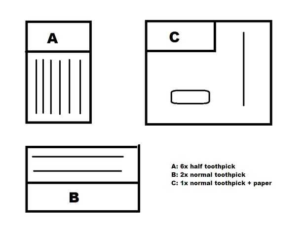 corte 3 toothsticks (6 mitad de piezas) y 2 sin los puntos