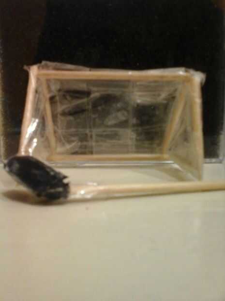 Esta es una foto de mala calidad. pero se trata de cómo debe parecerse (corte las piezas que no son necesarios, por ejemplo el pegarse hacia fuera la cinta scotch. e intentar que el palo de base para su comodidad.