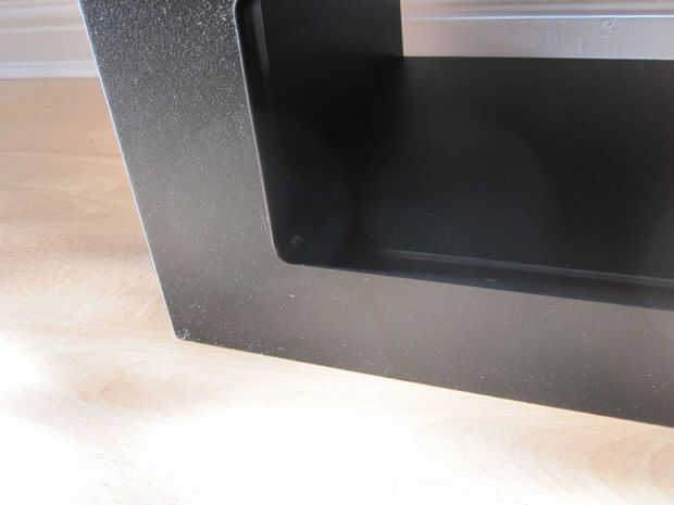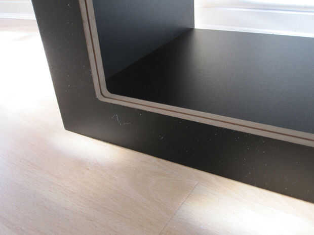 Una sección de retención fue cortada de la parte superior para poner en orden el aspecto. Los estantes internos fueron cubiertos con vinilo y se enrutó el orificio inferior de acceso con un cortador de la ranura T de moldeo se aplicó para terminar limpiamente.