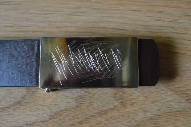 2. Añadir algún pegamento fuerte y el palo en el G & w el. Prueba y posición por lo que es recto y nivelado con la parte superior de la hebilla.