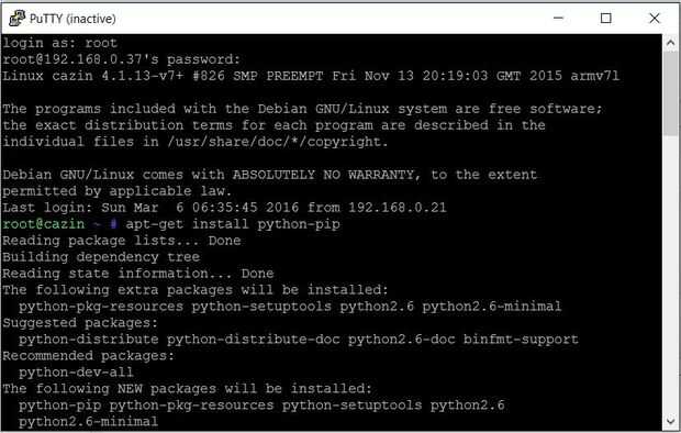 Instalar Python escribiendo el comando siguiente en la ventana SSH:
