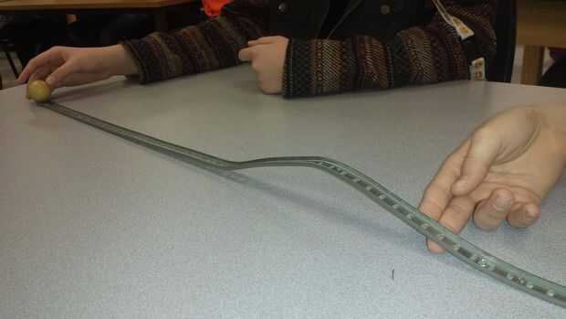 Luego tienes que doblar el metal para crear una pequeña colina. Es complicado ya que no quiere doblar que el metal drásticamente que el mármol se captura. Hay una transición suave. El tamaño inicial de la colina puede variar pero el segundo Cerro definitivamente necesitará más grande que la primera colina. Estaba mucho más éxito con un menor primera colina y más paso a volver la bola. Parece que recoger más fricción con este diseño de la bola de bowling estándar.
