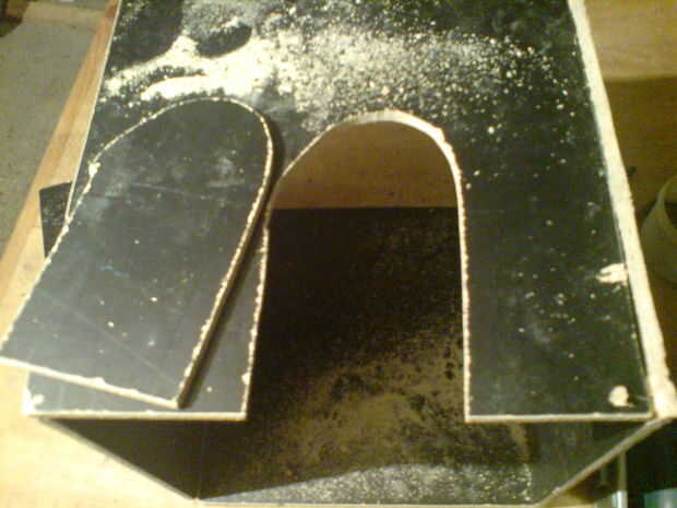 Luego, realizar un agujero para un túnel... Grande lo suficiente como para gato puede pasar por él, pero pequeño orificio no ve cuando hacemos el túnel.