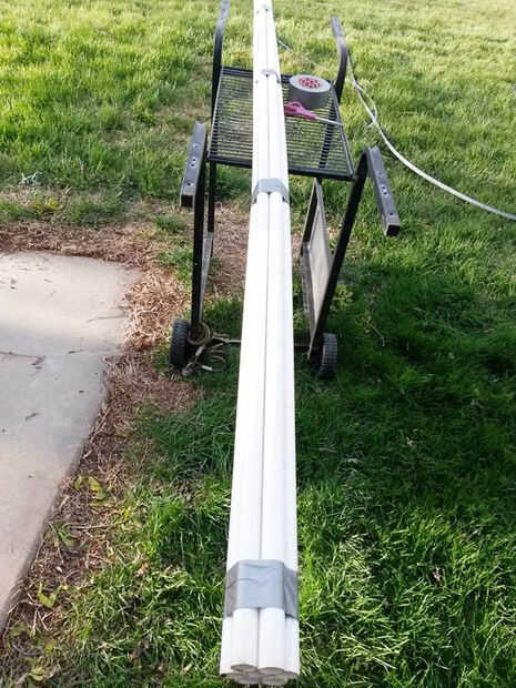 Entonces grabó la pipa juntos de la misma manera cada 2,5 pies. Esto mantiene el centro tubo de resbalamiento y ayuda a hace más rígido el haz. Hizo un buen caber para los niños que fue menos de 10 libras.