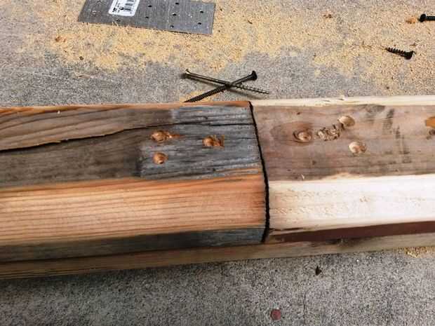 Primero traté de 2 "x 4"s con dos acoplados en el centro, uno centrado sobre el chapaleteo cada una de las personas y el último corte a la mitad para rellenar los extremos todos conectan entre sí con 3"tornillos de cubierta. Esto me dio un pie 16 de Ullapool.