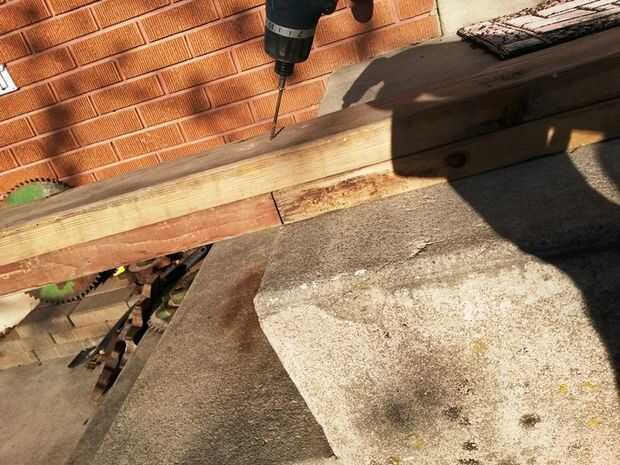La construcción real implicado poner el 2 "x 4"en sus lados y superposición de 4 pies y colocar las secciones media menor de 4 pies al final de cada uno de estos para llenar en el espacio abierto, alinee los bordes y adjuntar junto con 3' tornillos cada 6-9 pulgadas.