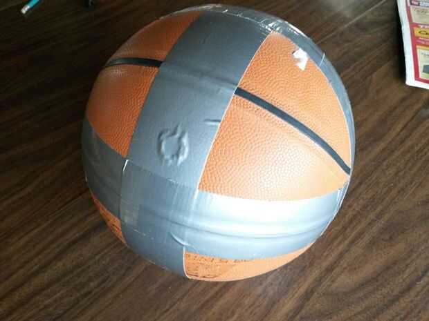 Encontré una bola de la cesta usada en una tienda de segunda mano por unos pocos dólares. Mayoría de las discusiones en hacer su propia bola de medicina involucrados cortando un agujero por el lado de la bola de relleno con el material de peso, generalmente arena, y luego pegar y grabar todo juntos. Me preocupaba que con la integridad de la bola quedaría comprometida demasiado para lanzar alrededor quería limitar cortar para arriba y tratar de conseguir el pegamento y cinta adhesiva para sostenerlo todo durante tirar.