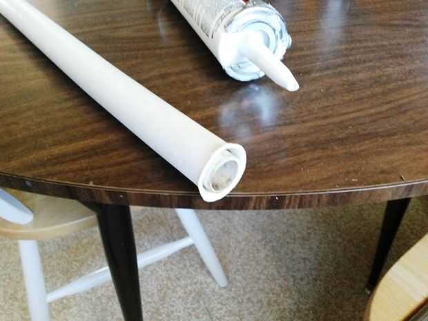 Cuando la primera capa de masilla de configuración ponga el tubo en la bola y centrado que al principio de la primera capa de masilla. Luego puse masilla más de eso, colocando la boquilla del tubo de calafateo a través del orificio de la válvula, para pegar el tubo a la primera capa. Tienes que apretar un poco el balón antes de poner la masilla, a tomar el aire o la contrapresión no deja la masilla en el pozo. Usted puede sentir la bola empuje hacia atrás los dedos apriete el calafateo y pone más presión en la bola. Parado en la esquina para ajustar hasta que la masilla se seque. Asegúrese de que limpiar cualquier sellador en el orificio de la válvula por lo que no tapan como cura.
