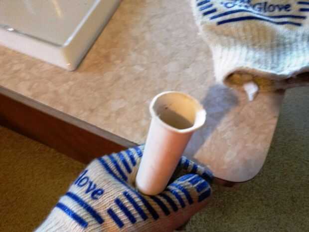 Yo sabía que el mango necesita alguna forma de labio o conexión al final, quería tener el final de la pelota y tiene un punto duro en la punta. Calienta el final para ir en bola a flare que pero descubrí que no podía flare fuera demasiado porque la bola no estira lo suficiente como para dejarlo ir. Por suerte PVC relajará hacia abajo cuando está re caliente. Así que trajo a calor y llegar a un punto en. Yo esperaba la masilla se adhieren a tubo y celebrar todos juntos.