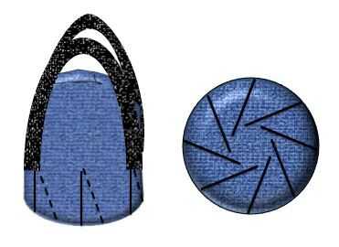 Volver a poner la bola en, doblar el material suelto en el extremo abierto sobre cada una de las 8 marcas y marque donde se encuentran. Si trabaja alrededor de lo que cada doblez en la misma dirección. Sacar la pelota y coser cada pliegue por donde marcaste. Si su máquina de coser no puede conseguir a través de todas las capas de material en el centro, como el mío, puede recortar el centro un poco y coser un anillo alrededor de la zona.