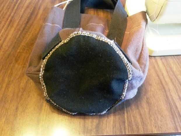 Para agregar algo de fuerza a esta área de la parte inferior puede cortar un círculo más grande de material y coser a la parte inferior justo debajo de donde está la parte inferior de las manijas.