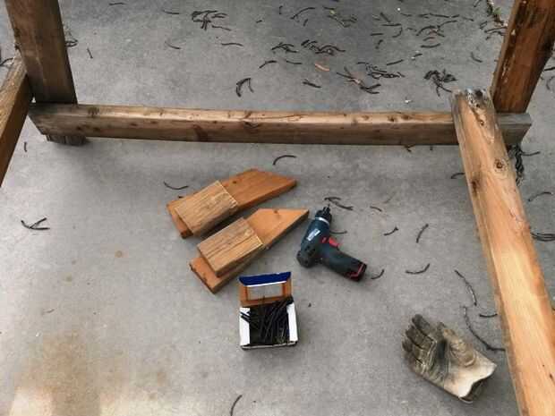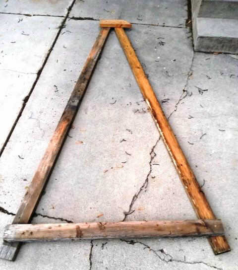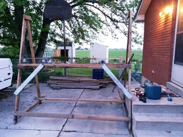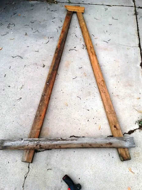 Las piernas son dos 8 pies, 2 "x 4" separados por una 4 pies 2 "x 4" y reunido para hacer un triangulo en la parte superior. Se realizan con tornillos de grabber. Están separados por tres 8 pies 2 "x 4"s con soportes de ángulo para apoyarlos. Restos fueron utilizados para hacer los bolsillos en el pico y el centro de la base para sostener la pipa del tren que están vinculados en su lugar con hilo cruzado sobre el riel y alrededor de una pierna luego detrás de la bolsa de balas. Una cuerda del amortiguador auxiliar o una combinación de cable/bungee se utilizará entre los dos rieles como el marcador por lo que tiene un poco si es golpeado. Los carriles están conectados en su socket usando tornillos autoroscantes.