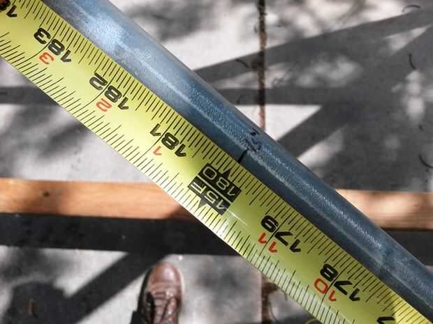 Ambos carriles se miden en incrementos de 1 pie y marcados. Luego alternaron cinta negra y cinta de plata en cada marca de los 10 pies a 20 pies marca. La cinta brillante muestra mejor al sol contra el tubo gris pero en mi foto mimetizan con él.