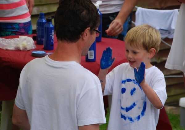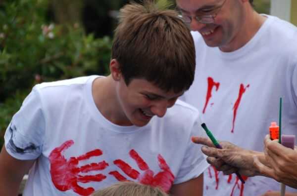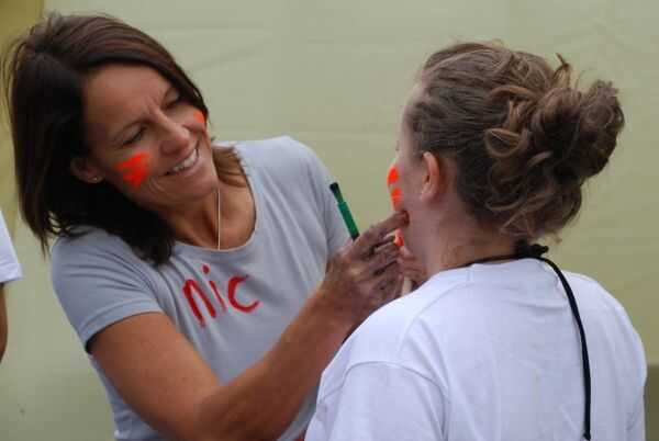 En años anteriores hemos proporcionado camisetas en colores del equipo, sin embargo una buena alternativa es que cada participante traiga un sacrificio blanco top-camiseta / chaleco similar o superior (Asegúrese de que usted informar a los participantes por adelantado). Como un primer juego dar equipos de una selección de artículos para adornar sus camisetas en colores de equipo. Simplemente utilizamos pintura de cartel y cepillos junto con pinturas de color de la cara, pero usted podrían incluir sellos, plantillas, brillo, laca coloreada u otros elementos similares. Podría dar un premio específico para el mejor top decorado.