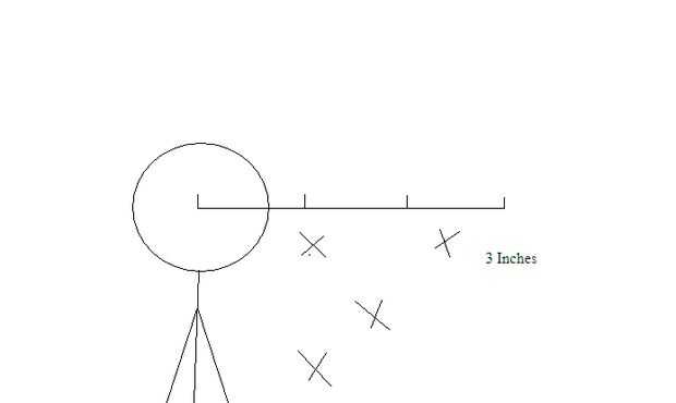 Como dije antes, un caballero/Ninja puede atacar en cualquier lugar dentro de tres pulgadas del centro de su cabeza. Marque su ataque con una "X".