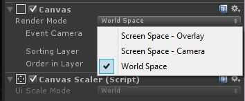 1) necesitamos esta interfaz de usuario en el espacio. Para ello, seleccionar la OVRCanvas y luego la unidad bajo la lona > RenderMode y en el desplegable seleccione espacio.