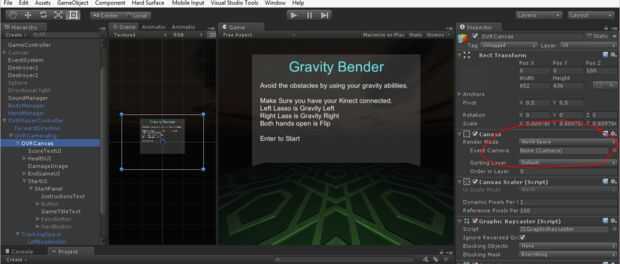 4) cambiar la animación en el dispositivo para aplicar a la nueva OVRCanvas – hacer esto añadiendo estas líneas al método despierto GameControllers: