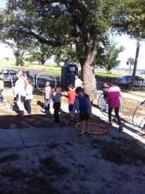 Cada niño obtiene un aro de Hula y lanza a los tiburones, tratando de "atrapar" el tiburón aterrizando el aro sobre el tiburón.