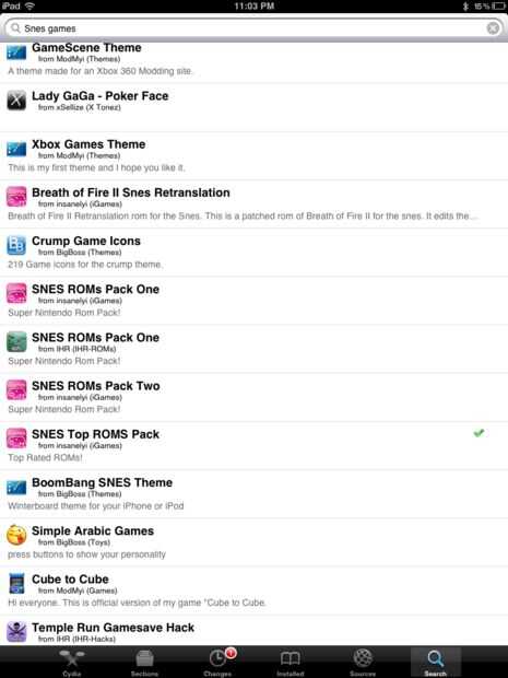 Ir a Cydia y buscar juegos de snes a escoger que juegos te gustaría jugar. Mi favorito personal es Pack de ROMS SNES parte superior. Usted puede escoger su propio favorito. No deberás reiniciar o reiniciar para este proceso.