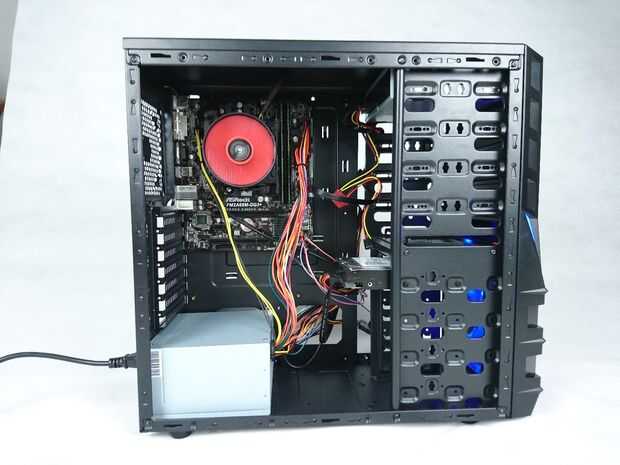 Ahora es el momento para conectar la fuente de alimentación. En mi caso la fuente de alimentación ya estaba allí, y sólo necesitaba para conectar los cables a la placa base y el reproductor de DVD.