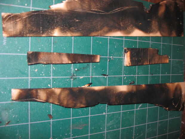 Tomar un lado caja larga y corta en una especie de forma ondulada. Tome un pedazo de leña y cortar 2 piezas para el lado de que del tanque conducirá encendido.