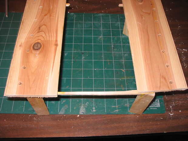Pegue el cedro entablonado en este rectángulo. Cuando se seca, cortar 1 de los palillos, (donde destaca).