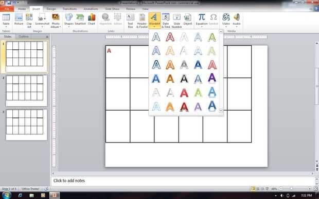 Ir a la pestaña "Insertar" y haga clic en "WordArt". Elegir el estilo que desea utilizar. Hacer 4 de cada carta y número necesario para una baraja de cartas (es decir 4 Ks, 4 Qs, 4 Js, 4 y 4 de números de 2-10). Colocar cada letra o número en la esquina superior izquierda de la tarjeta. Puse mis iniciales en las cartas del Joker, pero usted puede poner cualquier combinación de letra o número que desea. No dude en dar a cada palo su propio estilo de letra (cubrimos hacer trajes personalizados más tarde).