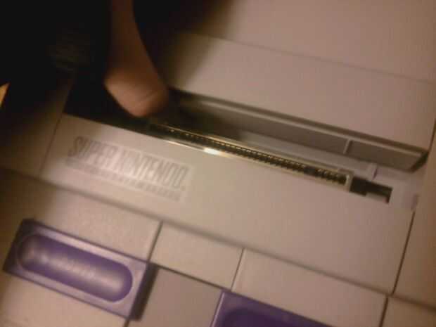 Nota : Super Famicom juego carros son ligeramente más pequeños, así que asegúrese de que está introduciendo correctamente cuando se desliza en. El carrito de Super Famicom tenía acceso a inclinado un poco hacia adelante, así que puse un pedazo delgado de cartón para sujetar en su lugar, y que hizo el truco para hacer los pines se alinean correctamente.